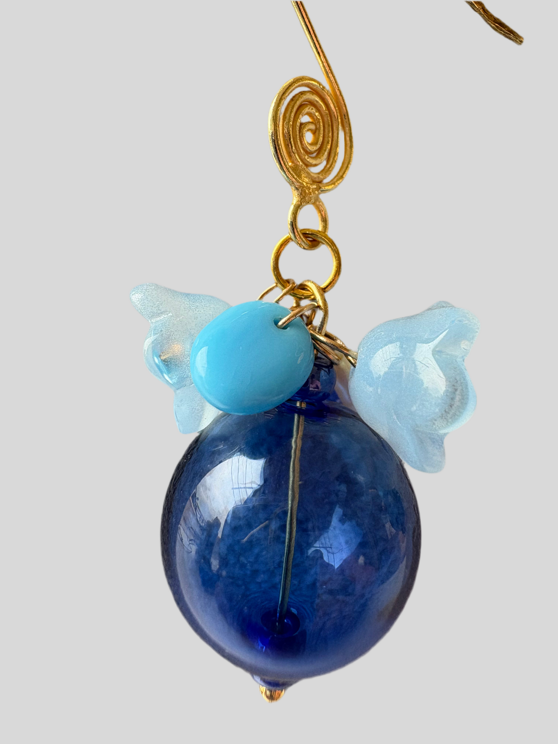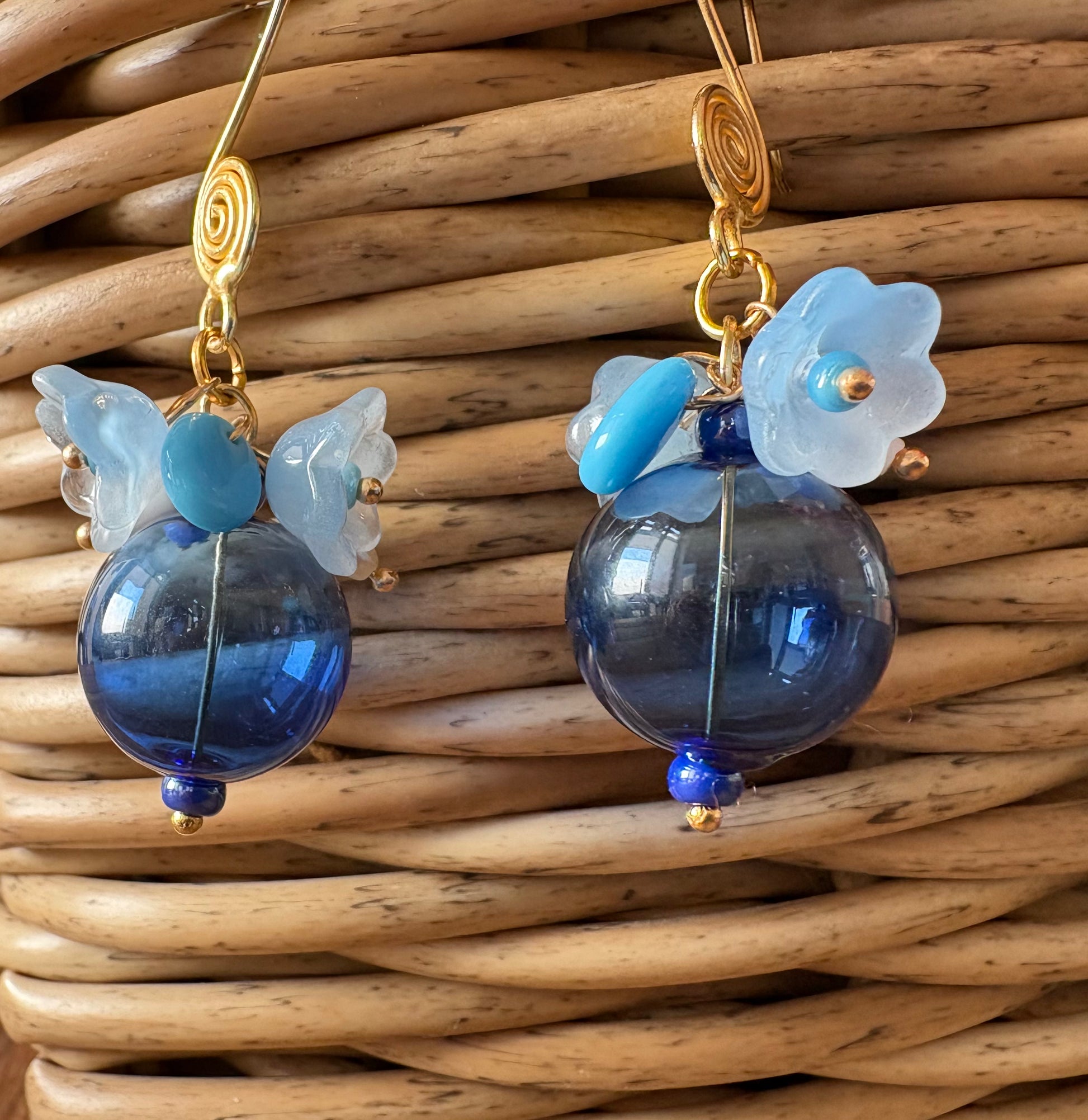 Una danza leggera di luce e colore: questi orecchini unici catturano l’essenza del mare e della primavera, fondendo l’intensità del blu profondo con la delicatezza dei petali cristallini.