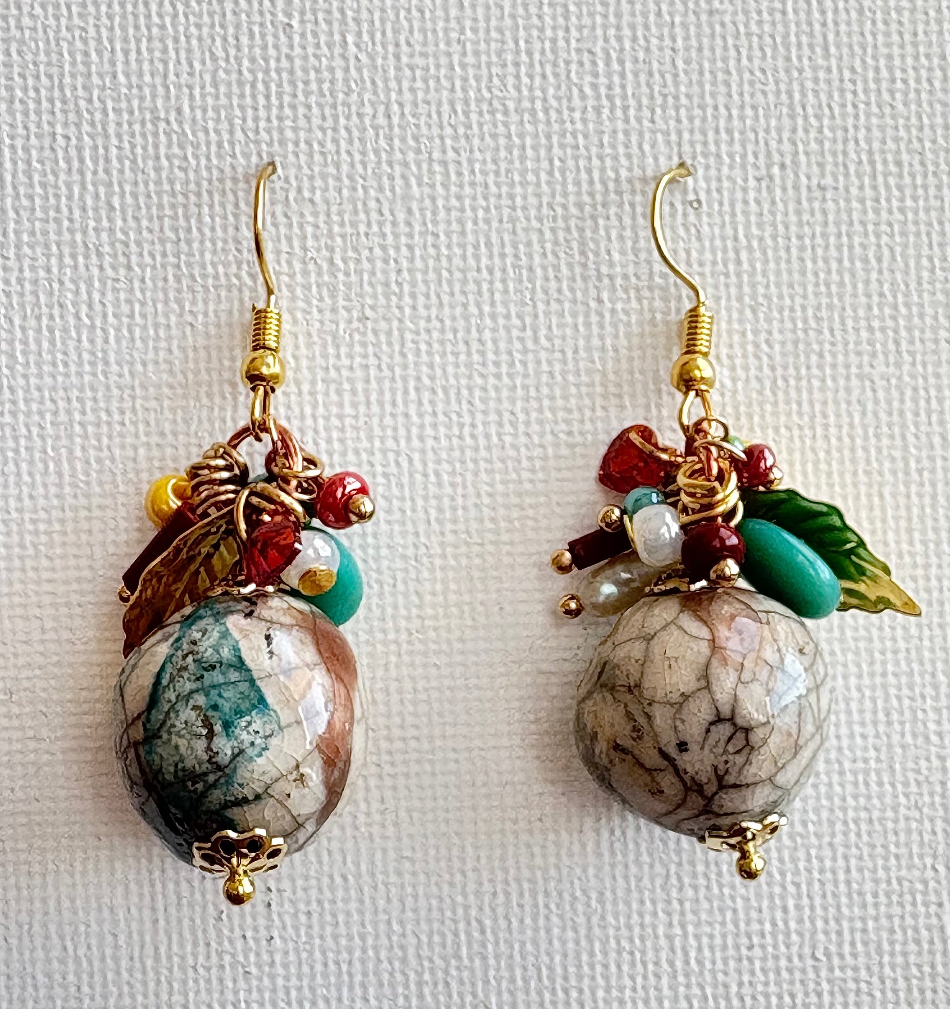 • Perline colorate nei toni del bordeaux, turchese, ambra e avorio, che aggiungono energia e contrasto.