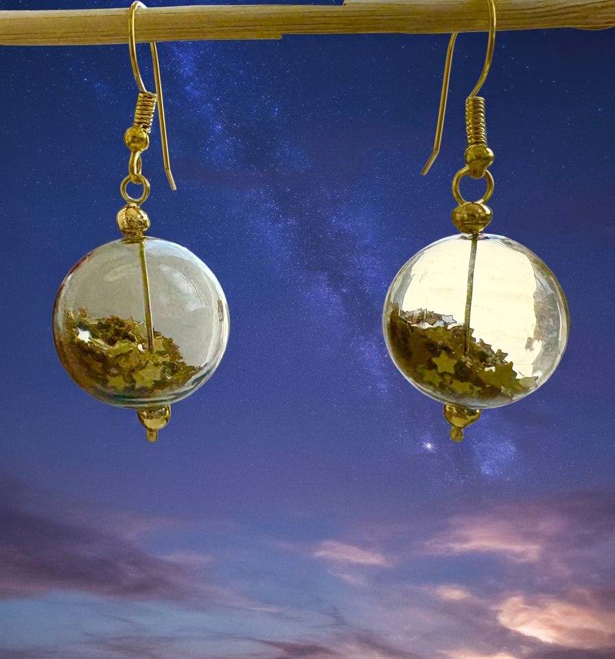 Orecchini “Galassia Dorata” – Sogni in una bolla di vetro